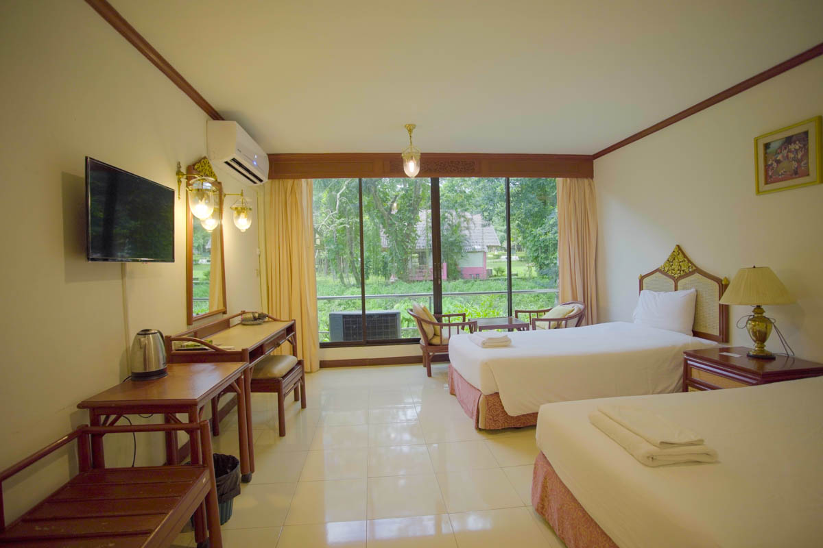 Superior & Deluxe Room: ห้องพักมาตรฐาน 2 เตียง (Twin Bed) ขนาดพื้นที่ใช้สอย 30 ตร.ม. สิ่งอำนวยความสะดวกครบครัน (แอร์, ทีวี, ตู้เย็น, เครื่องทำน้ำอุ่น) เหมาะสำหรับการจัดพักคู่สำหรับผู้เข้าร่วมสัมมนา